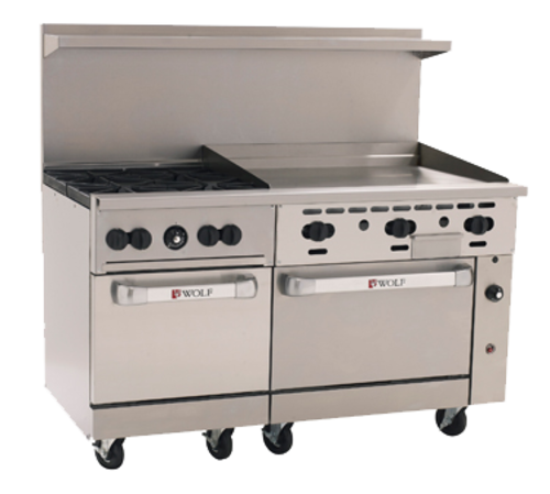 Challenger XL™ Restaurant Range, 60", gas, (4) 30,000 BTU burners with lift-off burner heads, 36" griddle, (2) standard oven bases, stainless steel front, sides, back riser & high shelf, fully welded body, 6" adjustable legs, 238,000 BTU, CSA, NSF