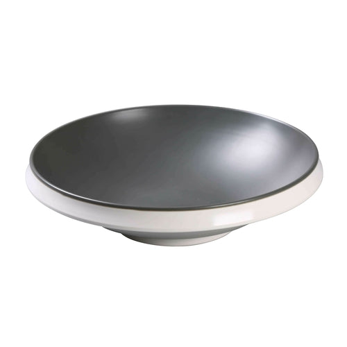 Discover Bowl, 98 oz., 12-1/2" dia. x 3-1/4"H, round, dishwasher safe, melamine, grey inside/white outside